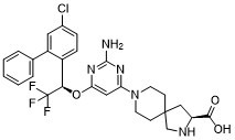 C1CN(CCC12C[C@H](NC2)C(=O)O)C3=CC(=NC(=N3)N)O[C@H](C4=C(C=C(C=C4)Cl)C5=CC=CC=C5)C(F)(F)F