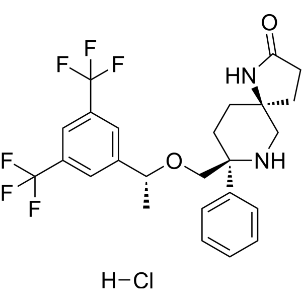 InChI=1S/C25H26F6N2O2.ClH/c1-16(17-11-19(24(26,27)28)13-20(12-17)25(29,30)31)35-15-23(18-5-3-2-4-6-18)10-9-22(14-32-23)8-7-21(34)33-22;/h2-6,11-13,16,32H,7-10,14-15H2,1H3,(H,33,34);1H/t16-,22-,23-;/m1./s1