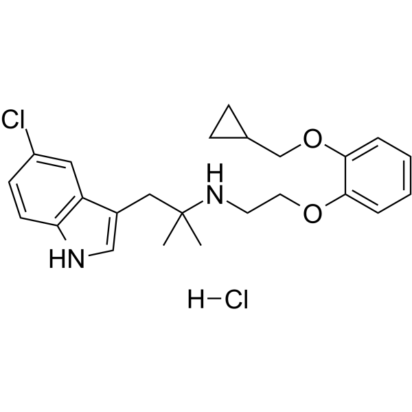 RS17053; RS 17053 HCl; RS 17053 hydrochloride; 169505-93-5; (N-[2-(2-CYCLOPROPYLMETHOXYPHENOXY)ETHYL]-5-CHLORO-ALPHA,ALPHA-DIMETHYL-1H-INDOLE-3-ETHANAMINE) HYDROCHLORIDE; RS 17053; RS 17053 HCl; 1-(5-Chloro-1H-indol-3-yl)-N-(2-(2-(cyclopropylmethoxy)phenoxy)ethyl)-2-methylpropan-2-amine hydrochloride; SCHEMBL2672959; CHEBI:231359; RS 17053 HCl