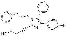 C1=CC=C(C=C1)CCCN2C(=NC(=C2C3=CC=NC=C3)C4=CC=C(C=C4)F)C#CCCO