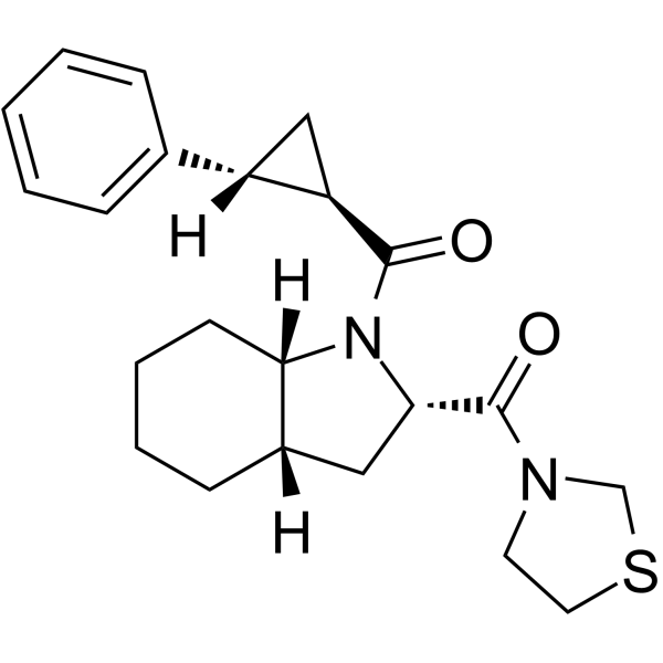 C1CC[C@H]2[C@@H](C1)C[C@H](N2C(=O)[C@@H]3C[C@H]3C4=CC=CC=C4)C(=O)N5CCSC5