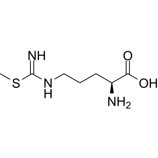 S-甲基-L-硫代瓜氨酸是L-精氨酸的衍生物,其中L-精氨酸的胍基氨基被甲基磺酸基取代。它是一种EC 1.14.13.39(一氧化氮合酶)抑制剂和神经保护剂。它是一种L-精氨酸衍生物、L-鸟氨酸衍生物、非蛋白源性L-α-氨基酸和亚氨基硫代氨基甲酸酯。