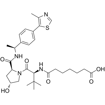 InChI=1S/C30H42N4O6S/c1-18(20-11-13-21(14-12-20)26-19(2)31-17-41-26)32-28(39)23-15-22(35)16-34(23)29(40)27(30(3,4)5)33-24(36)9-7-6-8-10-25(37)38/h11-14,17-18,22-23,27,35H,6-10,15-16H2,1-5H3,(H,32,39)(H,33,36)(H,37,38)/t18-,22+,23-,27+/m0/s1