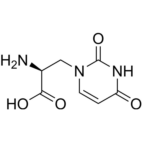 3-(尿嘧啶-1-基)-L-丙氨酸是L-丙氨酸的3-(尿嘧啶-1-基)衍生物。它是一种非蛋白源性L-α-氨基酸,也是L-丙氨酸的衍生物。它在功能上与尿嘧啶相关。它是3-(尿嘧啶-1-基)-L-丙氨酸两性离子的互变异构体。