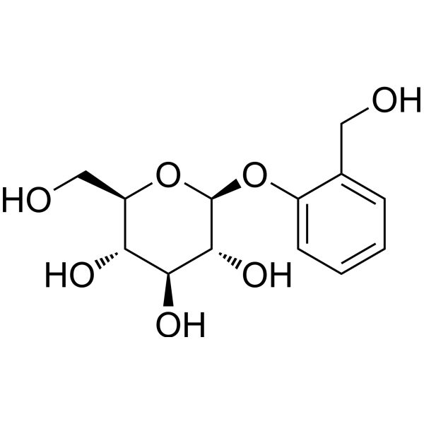 水杨苷是一种芳基β-D-葡萄糖苷,是水杨醇中酚羟基氢被β-D-葡萄糖残基取代的化合物。它具有多种药理作用,包括作为前药、解热药、非麻醉性镇痛药、非甾体类抗炎药、EC 1.14.99.1(前列腺素内过氧化物合酶)抑制剂以及代谢产物。它是一种芳基β-D-葡萄糖苷,属于芳香伯醇,也是苄醇类化合物。其功能与水杨醇相关。