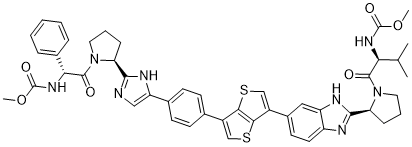 methyl N-[(1R)-2-[(2S)-2-[5-[4-[6-[2-[(2S)-1-[(2S)-2-(methoxycarbonylamino)-3-methylbutanoyl]pyrrolidin-2-yl]-3H-benzimidazol-5-yl]thieno[3,2-b]thiophen-3-yl]phenyl]-1H-imidazol-2-yl]pyrrolidin-1-yl]-2-oxo-1-phenylethyl]carbamate