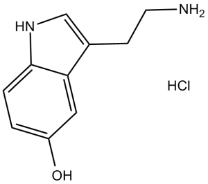 急性毒性:在雄性 C57BL/6 小鼠中,腹腔注射剂量高达 200 mg/kg 的盐酸血清素,72 小时内未造成死亡;在100 mg/kg剂量下观察到轻度短暂性活动过度(给药后1-2小时),未出现惊厥或器官损伤[1]