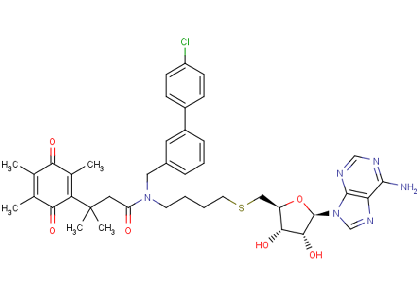 [C@H]1([C@H](O)[C@@H](CSCCCCN(CC2=CC(C3C=CC(Cl)=CC=3)=CC=C2)C(CC(C)(C)C2C(=O)C(C)=C(C)C(C=2C)=O)=O)O[C@H]1N1C=NC2C(N)=NC=NC=21)O