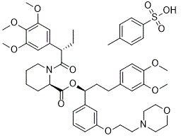 InChI=1S/C42H56N2O10.C7H8O3S/c1-7-33(31-27-38(49-4)40(51-6)39(28-31)50-5)41(45)44-18-9-8-13-34(44)42(46)54-35(16-14-29-15-17-36(47-2)37(25-29)48-3)30-11-10-12-32(26-30)53-24-21-43-19-22-52-23-20-431-6-2-4-7(5-3-6)11(8,9)10/h10-12,15,17,25-28,33-35H,7-9,13-14,16,18-24H2,1-6H32-5H,1H3,(H,8,9,10)/t33-,34+,35-/m0./s1