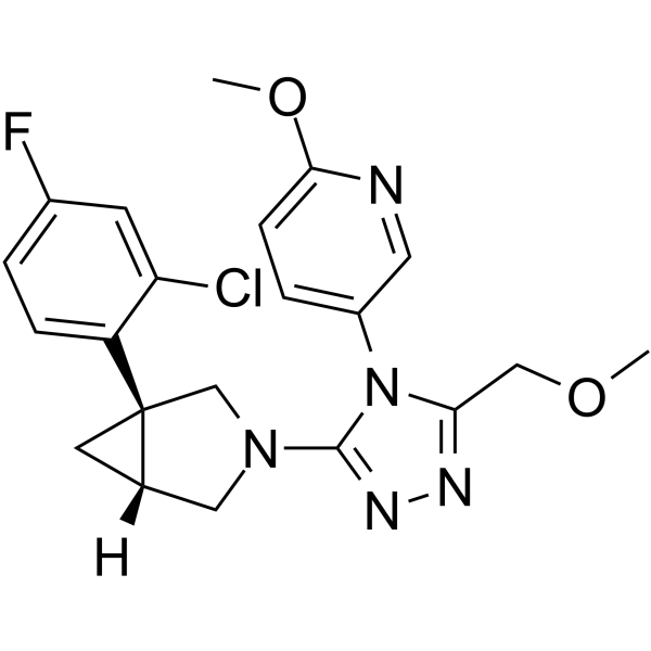 C1(=C(C=C(C=C1)F)Cl)[C@@]12CN(C3=NN=C(COC)N3C3C=CC(OC)=NC=3)C[C@@H]1C2