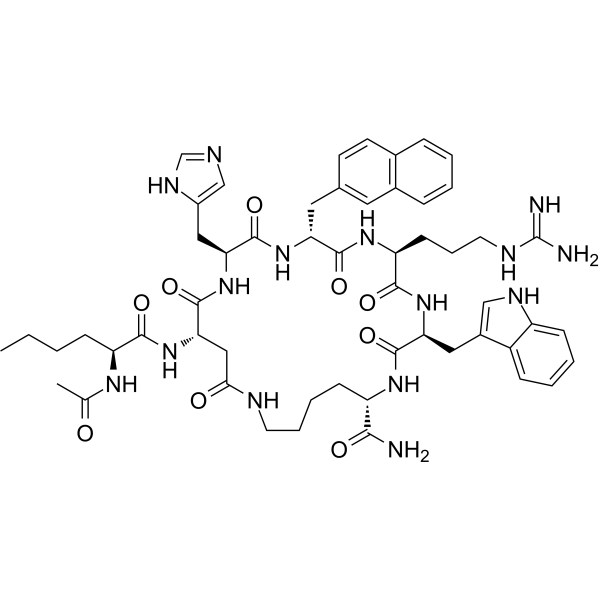 InChI=1S/C54H71N15O9/c1-3-4-15-40(63-31(2)70)48(73)69-45-27-46(71)59-21-10-9-17-39(47(55)72)64-51(76)43(25-35-28-61-38-16-8-7-14-37(35)38)67-49(74)41(18-11-22-60-54(56)57)65-50(75)42(24-32-19-20-33-12-5-6-13-34(33)23-32)66-52(77)44(68-53(45)78)26-36-29-58-30-62-36/h5-8,12-14,16,19-20,23,28-30,39-45,61H,3-4,9-11,15,17-18,21-22,24-27H2,1-2H3,(H2,55,72)(H,58,62)(H,59,71)(H,63,70)(H,64,76)(H,65,75)(H,66,77)(H,67,74)(H,68,78)(H,69,73)(H4,56,57,60)/t39-,40-,41-,42+,43-,44-,45-/m0/s1