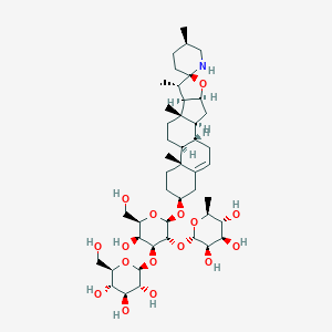 InChI=1S/C45H73NO16/c1-19-8-13-45(46-16-19)20(2)30-27(62-45)15-26-24-7-6-22-14-23(9-11-43(22,4)25(24)10-12-44(26,30)5)57-42-39(61-40-36(54)34(52)31(49)21(3)56-40)38(33(51)29(18-48)59-42)60-41-37(55)35(53)32(50)28(17-47)58-41/h6,19-21,23-42,46-55H,7-18H2,1-5H3/t19-,20+,21+,23+,24-,25+,26+,27+,28-,29-,30+,31+,32-,33+,34-,35+,36-,37-,38+,39-,40+,41+,42-,43+,44+,45-/m1/s1
