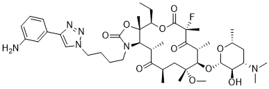 CC[C@@H]1[C@@]2([C@@H]([C@H](C(=O)[C@@H](C[C@@]([C@@H]([C@H](C(=O)[C@](C(=O)O1)(C)F)C)O[C@H]3[C@@H]([C@H](C[C@H](O3)C)N(C)C)O)(C)OC)C)C)N(C(=O)O2)CCCCN4C=C(N=N4)C5=CC(=CC=C5)N)C
