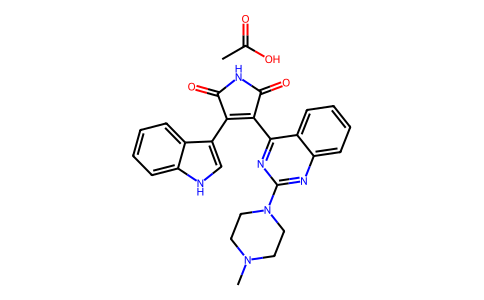 CN1CCN(C2=NC3=CC=CC=C3C(C4=C(C(NC4=O)=O)C5=CNC6=CC=CC=C56)=N2)CC1.CC(O)=O