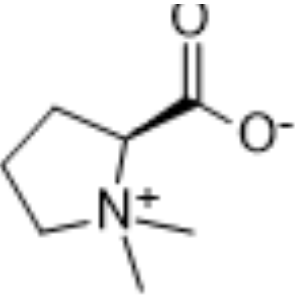 L-脯氨酸甜菜碱是一种氨基酸甜菜碱,它是L-脯氨酸的两性离子,其中与氮原子相连的两个氢原子均被甲基取代。它是一种食物成分、植物代谢产物和人血清代谢产物。它是一种N-甲基-L-α-氨基酸、生物碱和氨基酸甜菜碱。它在功能上与L-脯氨酸盐相关。它是N,N-二甲基-L-脯氨酸盐的共轭碱。它是D-脯氨酸甜菜碱的对映异构体。
