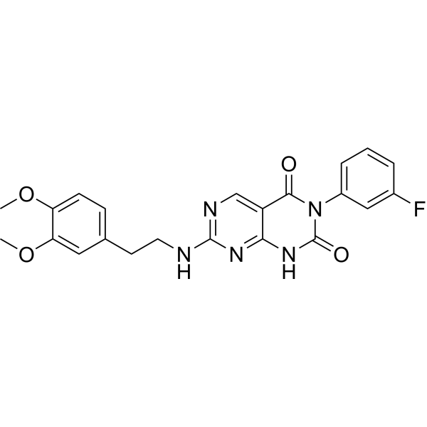 FC1=CC=CC(=C1)N1C(NC2C(=CN=C(N=2)NCCC2C=CC(=C(C=2)OC)OC)C1=O)=O