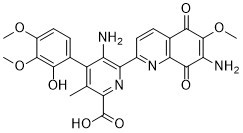 InChI=1S/C25H22N4O8/c1-9-14(10-6-8-13(35-2)23(36-3)20(10)30)15(26)19(29-17(9)25(33)34)12-7-5-11-18(28-12)22(32)16(27)24(37-4)21(11)31/h5-8,30H,26-27H2,1-4H3,(H,33,34)