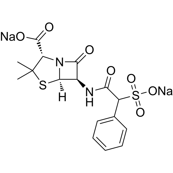 CC1([C@@H](N2[C@H](S1)[C@@H](C2=O)NC(=O)C(C3=CC=CC=C3)S(=O)(=O)[O-])C(=O)[O-])C.[Na+].[Na+]