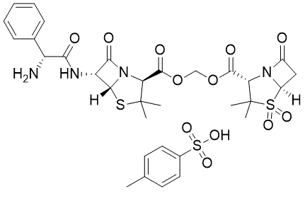 甲苯磺酸舒他西林口服吸收后水解生成舒巴坦 (HY-B0334) 和氨苄西林 (HY-B0522)[2]。