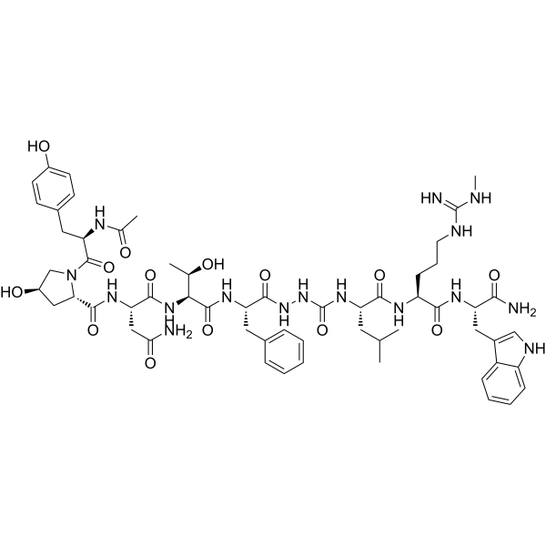 C[C@H]([C@@H](C(=O)N[C@@H](CC1=CC=CC=C1)C(=O)NNC(=O)N[C@@H](CC(C)C)C(=O)N[C@@H](CCCNC(=NC)N)C(=O)N[C@@H](CC2=CNC3=CC=CC=C32)C(=O)N)NC(=O)[C@H](CC(=O)N)NC(=O)[C@@H]4C[C@H](CN4C(=O)[C@@H](CC5=CC=C(C=C5)O)NC(=O)C)O)O