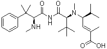 InChI=1S/C27H43N3O4/c1-17(2)20(16-18(3)25(33)34)30(10)24(32)22(26(4,5)6)29-23(31)21(28-9)27(7,8)19-14-12-11-13-15-19/h11-17,20-22,28H,1-10H3,(H,29,31)(H,33,34)/b18-16+/t20-,21-,22-/m1/s1
