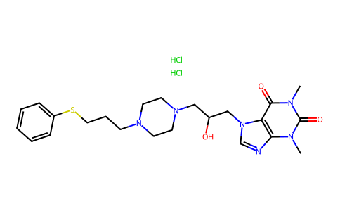 Cl.Cl.OC(CN1CCN(CCCSC2C=CC=CC=2)CC1)CN1C2=C(N(C)C(=O)N(C2=O)C)N=C1