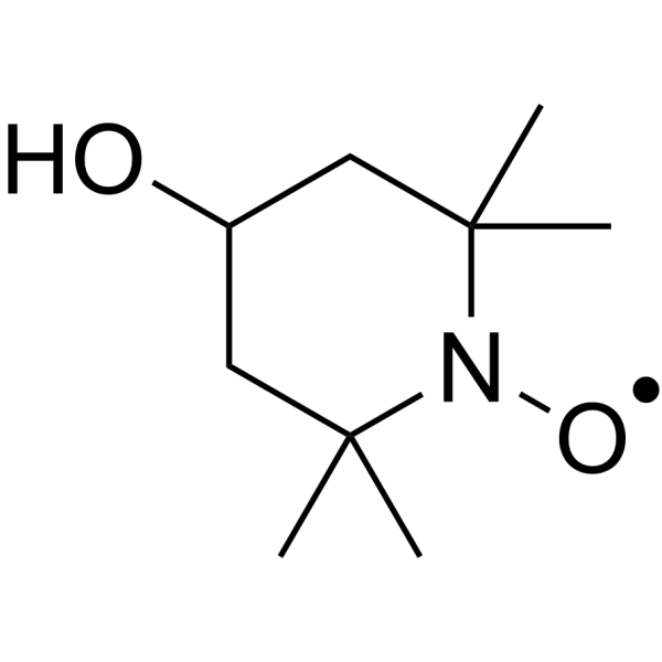 使用 SOD 类似物 Tempol 可以复制白藜芦醇对心脏功能的影响。 Tempol 每天通过管饲输送。与口服载体(VEH)相比,用 Met 或 Tmp 治疗的小鼠 PR 和 QTc 间期缩短,心率增加。这些结果与 RSV 治疗所取得的结果相似。描述了个体小鼠的治疗前和治疗后概况[1]。 Tempol 是一种膜渗透性自由基清除剂,可减少大鼠氧化应激介导的肾功能障碍和损伤。 Tempol有效降低肾缺血/再灌注引起的尿素、肌酐、γGT、AST、NAG和FENa的升高,表明肾功能和损伤得到改善。 Tempol 还显着降低了肾 MPO 活性和 MDA 水平,分别表明 PMN 浸润和脂质过氧化降低。 Tempol 可降低与缺血/再灌注相关的肾损伤的组织学症状,并导致硝基酪氨酸和 PARS 染色显着减少,表明亚硝化和氧化应激减少 [2]。