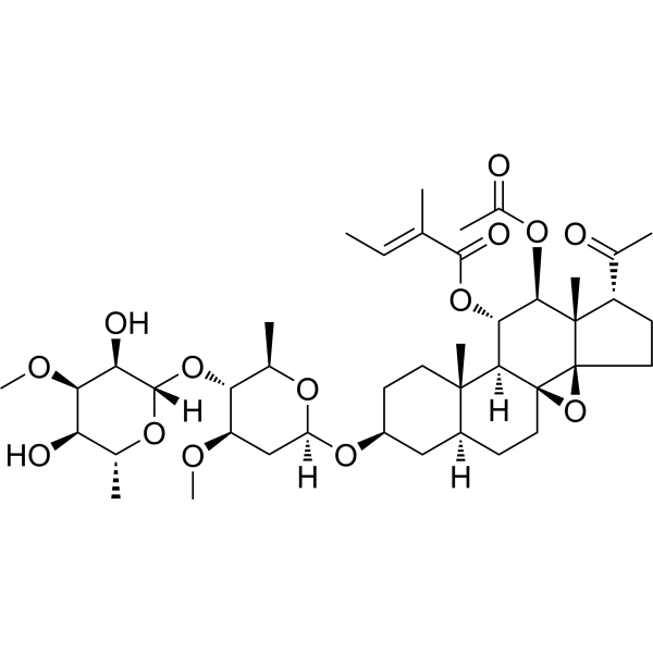 InChI=1S/C42H64O14/c1-11-20(2)37(47)54-34-35-39(7)15-13-26(53-29-19-28(48-9)32(23(5)50-29)55-38-31(46)33(49-10)30(45)22(4)51-38)18-25(39)12-16-41(35)42(56-41)17-14-27(21(3)43)40(42,8)36(34)52-24(6)44/h11,22-23,25-36,38,45-46H,12-19H2,1-10H3/b20-11+/t22-,23-,25+,26+,27+,28-,29+,30-,31-,32-,33-,34+,35-,36-,38+,39+,40+,41+,42-/m1/s1