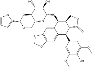 InChI=1S/C32H32O13S/c1-37-19-6-13(7-20(38-2)25(19)33)23-14-8-17-18(42-12-41-17)9-15(14)28(16-10-39-30(36)24(16)23)44-32-27(35)26(34)29-21(43-32)11-40-31(45-29)22-4-3-5-46-22/h3-9,16,21,23-24,26-29,31-35H,10-12H2,1-2H3/t16-,21+,23+,24-,26+,27+,28+,29+,31+,32-/m0/s1