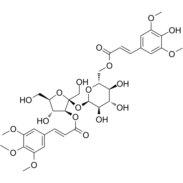 InChI=1S/C35H44O19/c1-45-19-10-17(11-20(46-2)27(19)40)6-8-25(38)50-15-24-28(41)30(43)31(44)34(51-24)54-35(16-37)33(29(42)23(14-36)53-35)52-26(39)9-7-18-12-21(47-3)32(49-5)22(13-18)48-4/h6-13,23-24,28-31,33-34,36-37,40-44H,14-16H2,1-5H3/b8-6+,9-7+/t23-,24-,28-,29-,30+,31-,33+,34-,35+/m1/s1