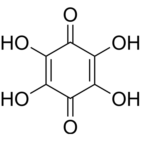 当用四羟基醌(100-500 μM)处理 24 小时时,细胞毒性细胞表现出抗 HL60 白血病的作用。通过总蛋白含量(IC50 为 20 µM)、磷酸酶活性(IC50 为 40 µM)或 MTT 测定(IC50 为 45 µM)评估活性。在 HL60 白血病细胞中,四羟基醌是 ROS 生成的强诱导剂 [1]。当浓度高于 25 µM 时,四羟基醌可有效激活 caspase 3,进而促进相同浓度下的 DNA 断裂和磷脂酰丝氨酸暴露 [1]。低至 25 µM 时,四羟基醌会导致线粒体释放细胞色素 c。蛋白激酶 B(Ser112 的 Bad 激酶)中 Ser473 磷酸化的增加是四羟基醌疗法的另一个作用 [1]。