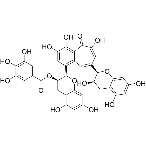 - GSH定量实验:肝细胞用该化合物(50、100 μM)处理24小时后裂解,裂解液与GSH检测试剂混合,37°C孵育15分钟,412 nm波长下测定吸光度,确定GSH浓度[1] - 脂质过氧化实验:人红细胞与茶黄素-3'-没食子酸酯(25、50、100 μM)孵育24小时,红细胞裂解液与硫代巴比妥酸(TBA)试剂混合,95°C加热60分钟,532 nm波长下测定MDA-TBA加合物的吸光度[1] |