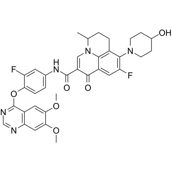 C12=CC(F)=C(N3CCC(O)CC3)C3=C1N(C(C)CC3)C=C(C(NC1=CC=C(OC3=C4C(=NC=N3)C=C(OC)C(OC)=C4)C(F)=C1)=O)C2=O