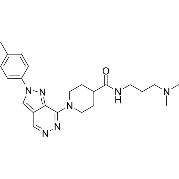 N1(C2=NN=CC3=CN(C4=CC=C(C)C=C4)N=C23)CCC(C(NCCCN(C)C)=O)CC1
