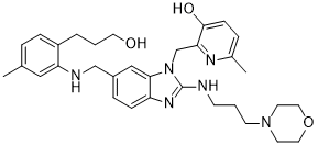 2-[[6-[[2-(3-hydroxypropyl)-5-methylanilino]methyl]-2-(3-morpholin-4-ylpropylamino)benzimidazol-1-yl]methyl]-6-methylpyridin-3-ol