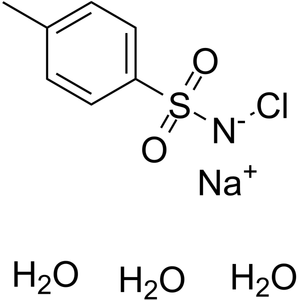 [2]. Shim I, et al. Inhalation exposure to chloramine T induces DNA damage and inflammation in lung of Sprague-Dawley rats. J Toxicol Sci. 2013;38(6):937-46. [3]. Kuklina I, et al. Investigation of chloramine-T impact on crayfish Astacus leptodactylus (Esch., 1823) cardiac activity. Environ Sci Pollut Res Int. 2014 Sep;21(17):10262-9. [4]. Martínez MA, et al. Induction of cytochrome P450-dependent mixed function oxidase activities and peroxisome proliferation by chloramine-T in male rat liver. Food Chem Toxicol. 2017 Aug;106(Pt A):86-91 |