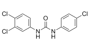三氯卡班属于苯脲类化合物,其结构为脲基化合物,在1位和3位分别被4-氯苯基和3,4-二氯苯基取代。它可用作消毒剂、防腐剂、抗菌剂、环境污染物和外源性物质。它是一种二氯苯,属于单氯苯类和苯脲类化合物。其结构与1,3-二苯脲类似。 三氯卡班,化学式为C13H9Cl3N2O,是一种抗菌剂,对金黄色葡萄球菌等革兰氏阳性菌尤其有效。它是一种抑菌化合物,常见于抗菌皂和其他个人护理产品中。 2017年,美国食品药品监督管理局(FDA)禁止销售含有三氯卡班的非处方(OTC)消费者抗菌洗涤产品,原因是其会产生细菌耐药性或激素紊乱等负面健康影响。 三氯卡班是三氯生的类似物,具有抗菌特性。三氯卡班通过抑制烯酰-(酰基载体蛋白)(ACP)还原酶的活性发挥作用,该酶广泛分布于细菌、真菌和植物中。ACP还原酶催化II型脂肪酸合成酶系统中每个脂肪酸延长循环的最后一步。因此,该药物会干扰细胞膜合成,从而抑制细菌生长。 药物适应症 三氯卡班 (TCC),或称 3,4,4'-三氯卡巴尼利,是一种用于固体和液体肥皂以及沐浴露的抗菌剂。 作用机制 三氯卡班是三氯生的类似物,具有抗菌活性。三氯卡班通过抑制烯酰-(酰基载体蛋白) (ACP) 还原酶的活性发挥作用,该酶广泛分布于细菌、真菌和各种植物中。ACP 还原酶催化 II 型脂肪酸合成酶系统中每个脂肪酸延长循环的最后一步。因此,该药物会干扰细胞膜合成,从而抑制细菌生长。 作为一种卡巴尼利类化合物,三氯卡班可根据其抗菌机制归类为膜活性化合物。其作用方式可描述为非特异性吸附于细胞膜,干扰细胞间质蛋白的功能和/或破坏细胞膜的半透性,导致离子和有机分子的释放。抑菌或杀菌作用取决于浓度。在标准应用浓度下,三氯卡班主要抑制革兰氏阳性菌的生长,但也抑制革兰氏阴性菌的生长。与抗生素不同,三氯卡班等膜活性抗菌物质可在短时间内起效。 治疗用途 防腐剂、消毒剂。 /EXPL THER/ 抗菌剂三氯卡班在个人护理产品中的使用日益增多,引发了人们对环境污染的担忧。三氯卡班是一种强效的可溶性环氧化物水解酶 (sEH) 抑制剂。sEH 抑制剂 (sEHI) 在多种动物模型中均表现出抗炎、抗高血压和心脏保护作用。然而,尚未有关于三氯卡班体内 sEHI 预期作用的报道。本研究在小鼠模型中证实了三氯卡班的体内抗炎作用。我们采用脂多糖 (LPS) 诱导的小鼠模型,并检测了收缩压、多种炎症细胞因子和趋化因子的血浆水平以及血浆氧化脂质的代谢组学特征。结果显示,三氯卡班以时间依赖性方式显著逆转了 LPS 诱导的病理性低血压,并显著抑制了 LPS 引起的炎症细胞因子和趋化因子的释放增加。此外,三氯卡班在体内以时间依赖性方式显著改变了氧脂素谱,使其朝着炎症消退的方向发展,这与sEHI的预期一致。这些结果表明,在所用剂量下,三氯卡班在小鼠模型中具有抗炎作用。本研究提示,由于三氯卡班对sEH的强效抑制作用,除了其抗菌活性外,可能还具有其他一些对人体有益的功效。这可能是开发三氯卡班新型低用量高价值应用的一个有前景的起点。然而,这些生物学效应也提醒人们注意在个人护理产品中过度使用三氯卡班。 药效学 三氯卡班的抑菌和杀菌作用的抗菌机制被认为是其非特异性吸附于细胞膜并干扰其功能。因此,革兰氏阳性菌和革兰氏阴性菌的生长均受到抑制。 三氯卡班是一种用于个人护理产品的抗菌剂。三氯卡班可通过皮肤吸收,使用含三氯卡班的肥皂洗澡后,可在人体血液中检测到纳摩尔浓度的三氯卡班。研究表明,纳摩尔浓度(300 nM 或更高)的三氯卡班可能通过降低细胞非蛋白硫醇含量和增加对氧化应激的敏感性来影响细胞功能,尽管目前尚未证实其对人体有直接不良反应。[1] |