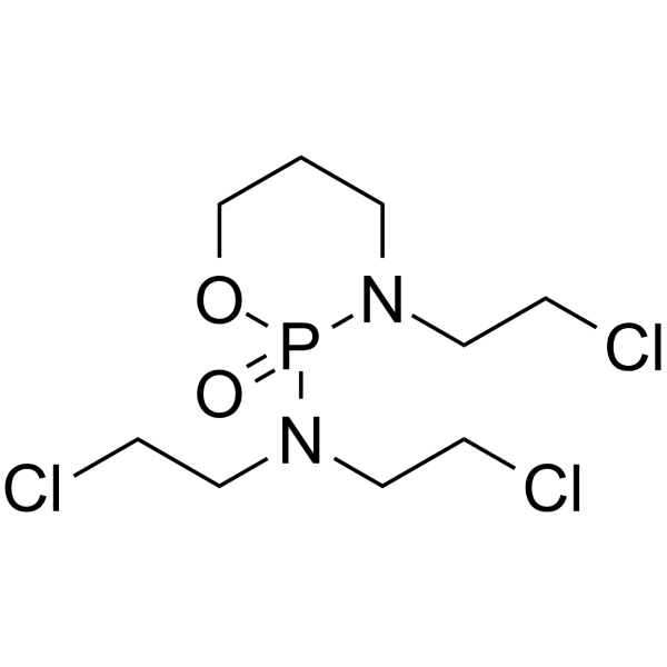 曲磷酰胺已用于治疗室管膜瘤、髓母细胞瘤、肉瘤、软组织肿瘤、幕上原始神经外胚层肿瘤(PNET)和复发性脑肿瘤的临床试验。 曲磷酰胺是一种口服生物利用度高的恶唑磷前药,具有抗肿瘤活性。曲磷酰胺(TFF)主要代谢为环磷酰胺类似物异环磷酰胺(IFO),后者经肝细胞色素P450代谢为活性成分异磷酰胺芥(IPM)。IPM可烷基化DNA形成DNA-DNA交联,从而抑制DNA、RNA和蛋白质的合成,最终导致肿瘤细胞凋亡。 |