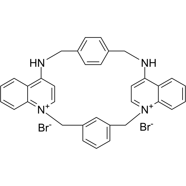 UCL 1684(二溴化物)(0.5 μM;HEK 细胞)可改变心脏钠通道的 SS 失活,并导致钠通道电流 (INa) 的直接心房选择性抑制。 0.5 μM 的 UCL 1684(二溴化物)可延长最短的 S1-S1 间隙,导致 PRR、降低 V max 并增加 DTE [1]。