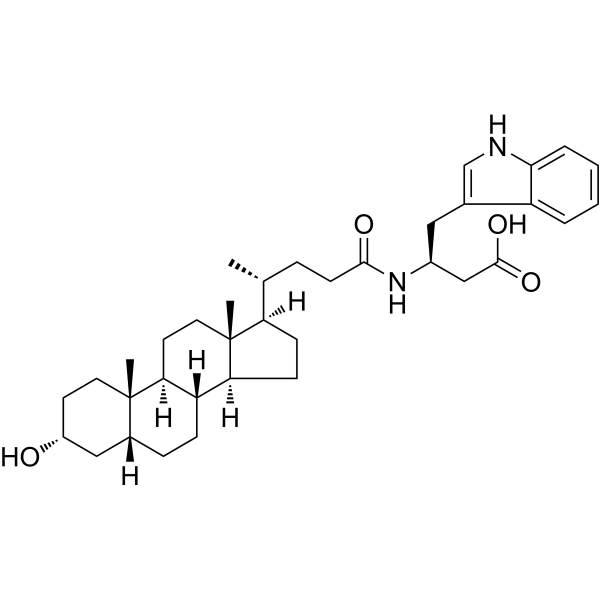 InChI=1S/C36H52N2O4/c1-22(8-13-33(40)38-25(20-34(41)42)18-23-21-37-32-7-5-4-6-27(23)32)29-11-12-30-28-10-9-24-19-26(39)14-16-35(24,2)31(28)15-17-36(29,30)3/h4-7,21-22,24-26,28-31,37,39H,8-20H2,1-3H3,(H,38,40)(H,41,42)/t22-,24-,25+,26-,28+,29-,30+,31+,35+,36-/m1/s1