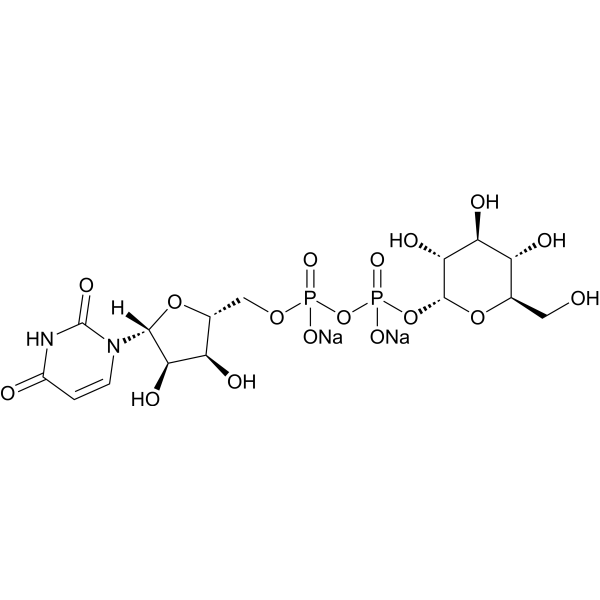 - 尿苷5'-二磷酸葡萄糖二钠盐(Uridine 5′-diphosphoglucose disodium salt,UDP-葡萄糖)是P2Y14受体的选择性激动剂。在表达人P2Y14的HEK293细胞中,它激活受体介导的细胞内Ca²⁺动员,EC50为0.32 ± 0.04 μM [4]