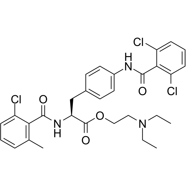 CCN(CC)CCOC(=O)[C@H](CC1=CC=C(C=C1)NC(=O)C2=C(C=CC=C2Cl)Cl)NC(=O)C3=C(C=CC=C3Cl)C