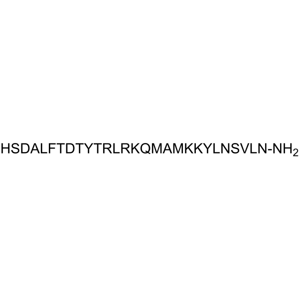注射用配方1: DMSO : Tween 80: Saline = 10 : 5 : 85 (如: 100 μL DMSO → 50 μL Tween 80 → 850 μL Saline)(IP/IV/IM/SC等) *生理盐水/Saline的制备:将0.9g氯化钠/NaCl溶解在100 mL ddH ₂ O中,得到澄清溶液。 注射用配方 2: DMSO : PEG300 :Tween 80 : Saline = 10 : 40 : 5 : 45 (如: 100 μL DMSO → 400 μL PEG300 → 50 μL Tween 80 → 450 μL Saline) 注射用配方 3: DMSO : Corn oil = 10 : 90 (如: 100 μL DMSO → 900 μL Corn oil) 示例: 以注射用配方 3 (DMSO : Corn oil = 10 : 90) 为例说明, 如果要配制 1 mL 2.5 mg/mL的工作液, 您可以取 100 μL 25 mg/mL 澄清的 DMSO 储备液,加到 900 μL Corn oil/玉米油中, 混合均匀。 View More