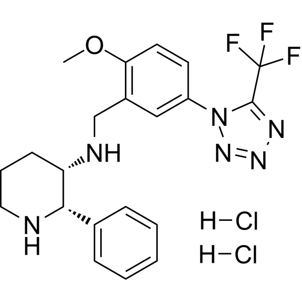 InChI=1S/C21H23F3N6O.2ClH/c1-31-18-10-9-16(30-20(21(22,23)24)27-28-29-30)12-15(18)13-26-17-8-5-11-25-19(17)14-6-3-2-4-7-14;;/h2-4,6-7,9-10,12,17,19,25-26H,5,8,11,13H2,1H3;2*1H/t17-,19-;;/m0../s1