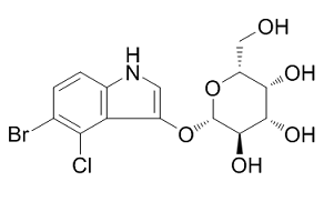 5-溴-4-氯-3-吲哚基β-D-半乳糖苷是一种吲哚基碳水化合物,它是3-羟基-1H-吲哚的β-D-半乳糖苷,其中吲哚部分在4位和5位分别被氯和溴取代。它可用于检测β-半乳糖苷酶的存在,该酶能水解糖苷键生成5-溴-4-氯-3-羟基-1H-吲哚,后者立即二聚化生成深蓝色产物。它是一种显色化合物。它是一种吲哚基碳水化合物、β-D-半乳糖苷、有机氯化合物、有机溴化合物和D-醛糖衍生物。