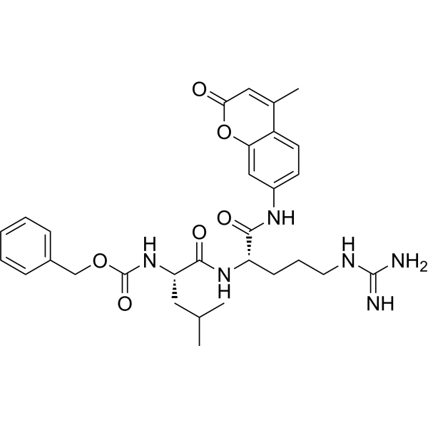 InChI=1S/C30H38N6O6/c1-18(2)14-24(36-30(40)41-17-20-8-5-4-6-9-20)28(39)35-23(10-7-13-33-29(31)32)27(38)34-21-11-12-22-19(3)15-26(37)42-25(22)16-21/h4-6,8-9,11-12,15-16,18,23-24H,7,10,13-14,17H2,1-3H3,(H,34,38)(H,35,39)(H,36,40)(H4,31,32,33)/t23-,24-/m0/s1