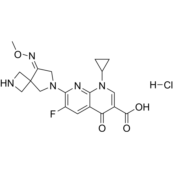 CO/N=C/1\CN(CC12CNC2)C3=C(C=C4C(=O)C(=CN(C4=N3)C5CC5)C(=O)O)F.Cl