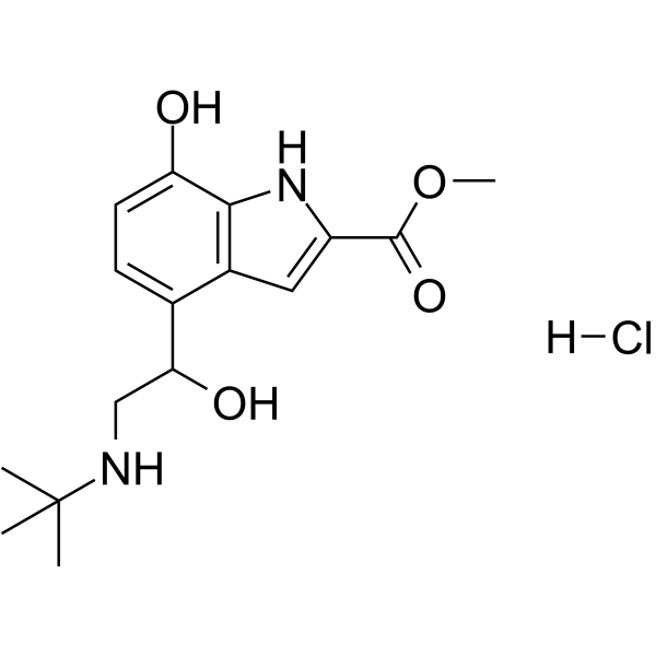 O=C(C(N1)=CC2=C1C(O)=CC=C2C(O)CNC(C)(C)C)OC.[H]Cl