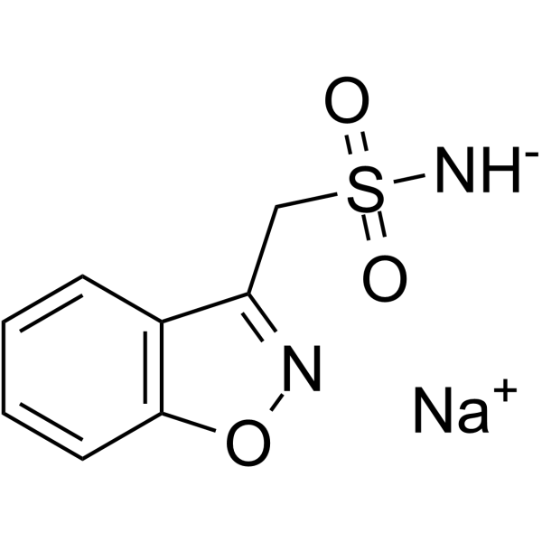 Zonisamideodium(10、50、100、200 µM;24 小时)通过抗凋亡作用增强 SH-SY5Y 细胞的活力 [1]。 Zonisamideodium(100 µM;24 小时)在 PD 细胞模型中具有神经保护特性。 (PD:帕金森病)[1]。 Zonisamideodium(100 µM;24 小时)可降低促凋亡标记物的水平并上调 MnSOD 的水平(MnSOD 的过度表达可减弱 MPTP 毒性并保护细胞免于凋亡)[1]。 Zonisamideodium(0.1、0.3、1μM;24小时)在体外可减少心肌肥厚和纤维化[3]。 Zonisamideodium 显着增强 Ang II 处理的 NRCM 中 Hrd1 的表达 [3]。